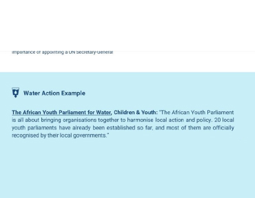 The African Youth Parliament for Water is on the road to the UN Water Conference Chapters of the African Youth Water Parliament will represent African Youth in New York to make their voices heard at the UN Water Conference.