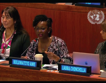 Boluwatito Awe, President of the NYPW is a lead discutant and addresses the UN